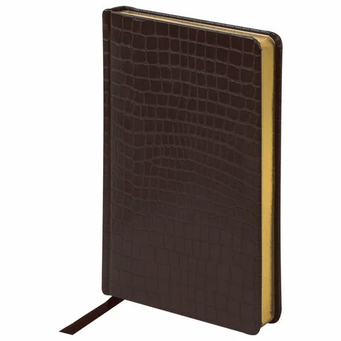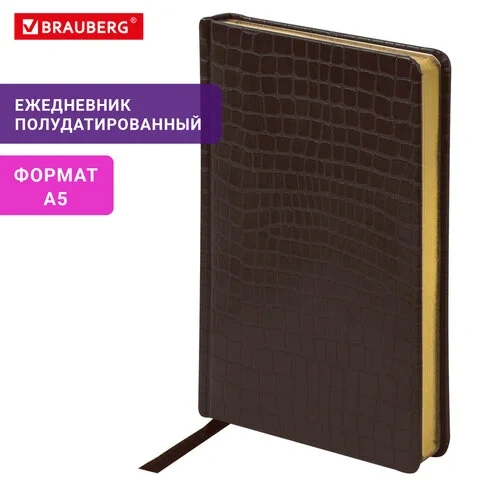 Ежедневник полудатированный Brauberg Alligator темно-коричневый, А5, 208 листов, под крокодиловую кожу