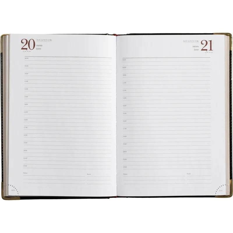 Размер изделия — 14.5×21.6 см. Ежедневник имеет вертикальную ориентацию, поставляется в подарочной упаковке и подходит для персонализации — возможно нанесение логотипа.