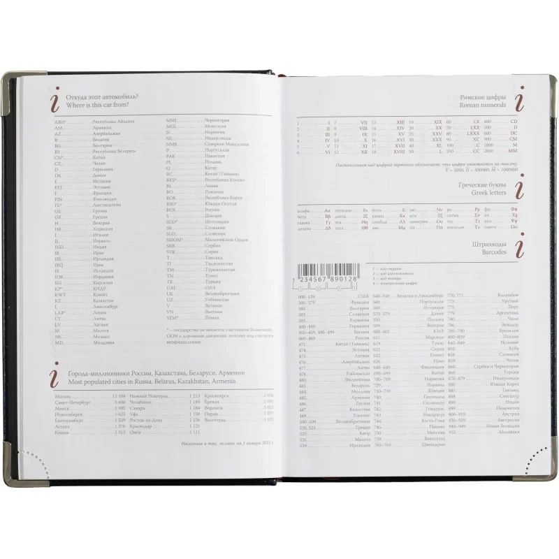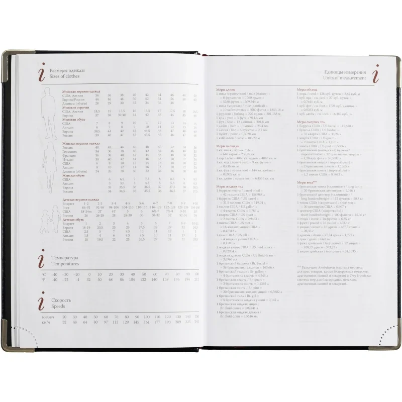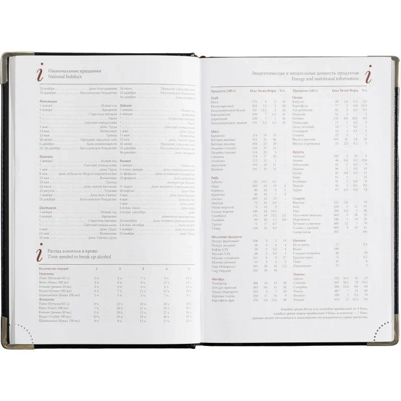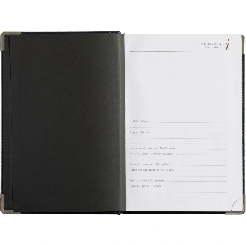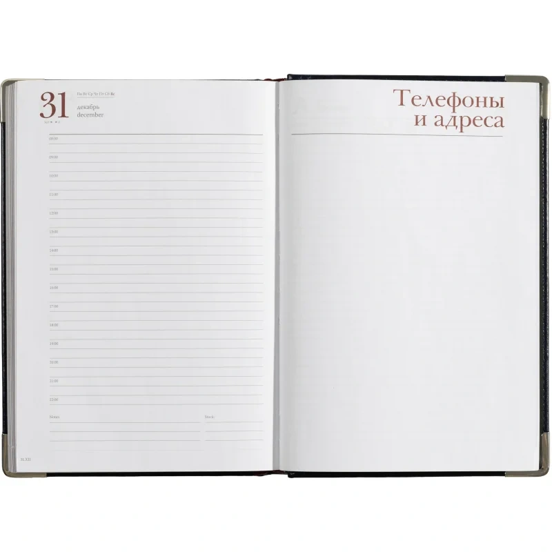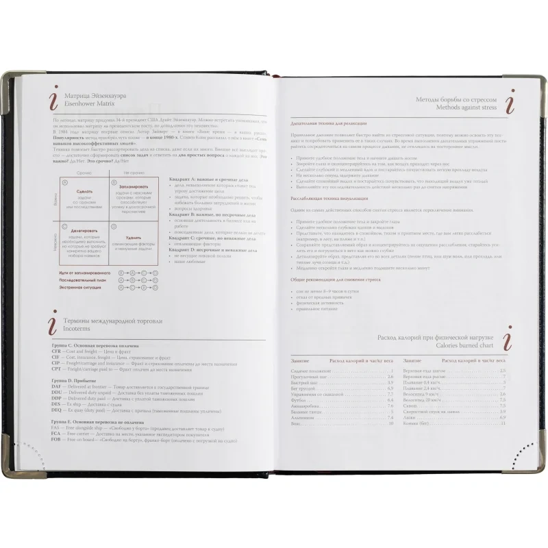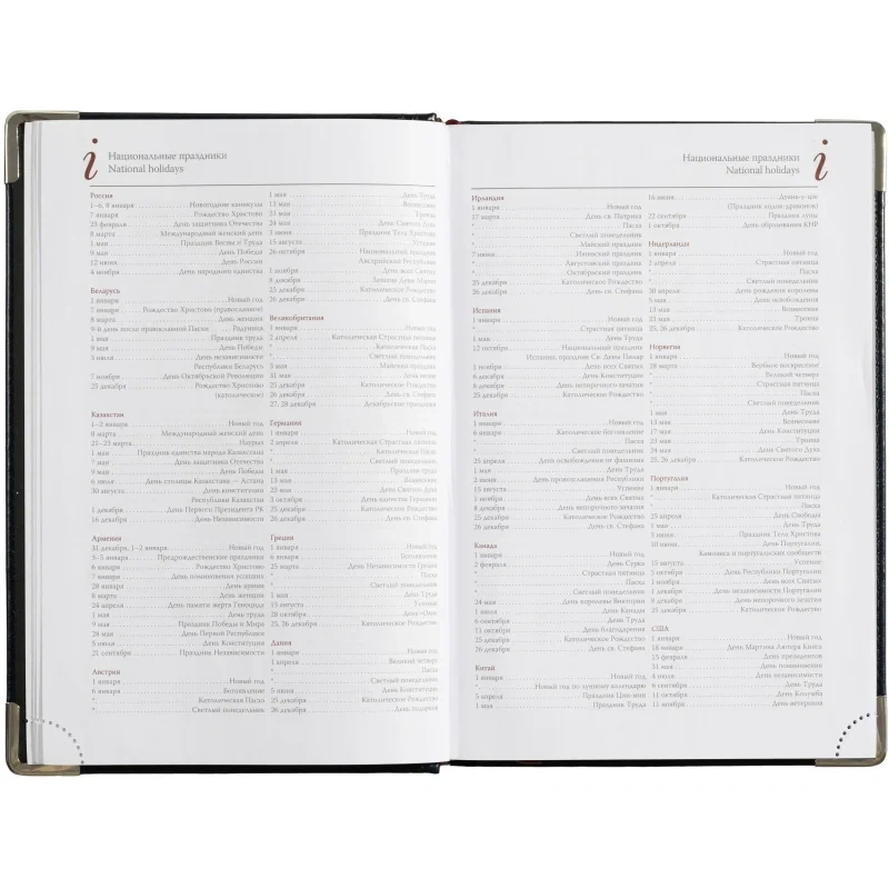 Кроме страниц для планирования, в ежедневнике представлена справочная информация телефонная книга, место для заметок и цветная карта мира.
