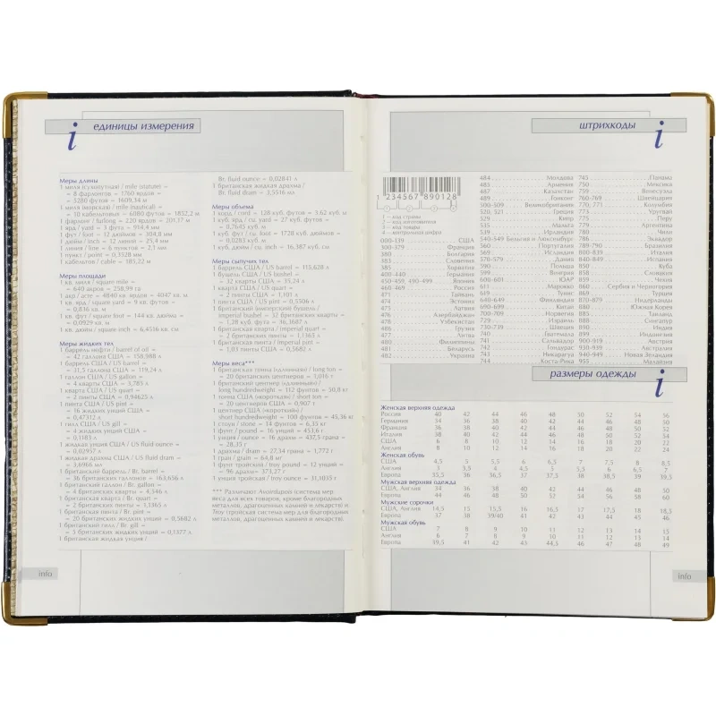 Ежедневник имеет вертикальную ориентацию. Размер изделия составляет 14.5×21.6 см. Подходит для персонализации — возможно нанесение логотипа. Поставляется в подарочной упаковке, что делает его отличным вариантом для подарка.