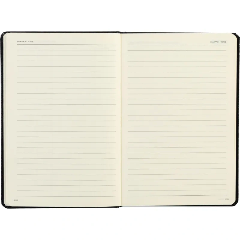 Внутренний блок состоит из 160 листов (320 страниц) бежевой офсетной бумаги плотностью 90 г/кв.м. и размером 140×210 мм. Печать выполнена в один цвет, а страницы имеют линейку, что способствует аккуратности записей. Для удобства быстрого поиска нужной страницы предусмотрена закладка-ленточка (ляссе).