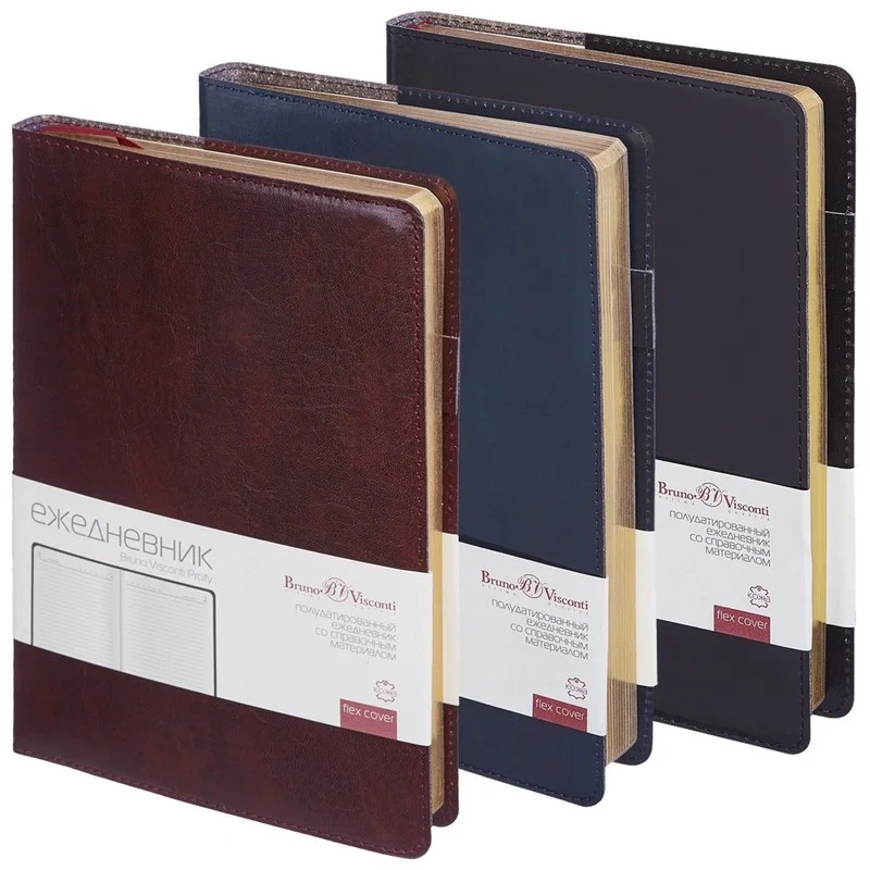 Ежедневник полудатированный Bruno Visconti Profy натуральная кожа А5 208 листов коричневый (золотистый обрез) — это стильный и удобный аксессуар для планирования и организации дел.