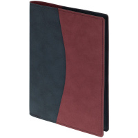 Ежедневник в двусторонней суперобложке, выполненной из материала Nubuck, темно-синий и винный, дополнен цветным ляссе. Блок 986:Кол-во страниц — 256; Бумага — тонированная, плотность 70 г/м; Форзац и нахзац — черного цвета. Цвет - бордо. Размер: 15х21 см. Материал: искусственная кожа. Возможные виды нанесения: Лазерная гравировка; Тиснение; Шелкография (1 цвет)