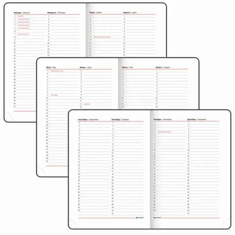 Дополнением является закладка-ляссе, с помощью которой при необходимости можно быстро открыть ежедневник на нужной странице. Помимо прочего ежедневник снабжен обширным справочным материалом. В конце ежедневника есть 7 страниц для записей и заметок.
