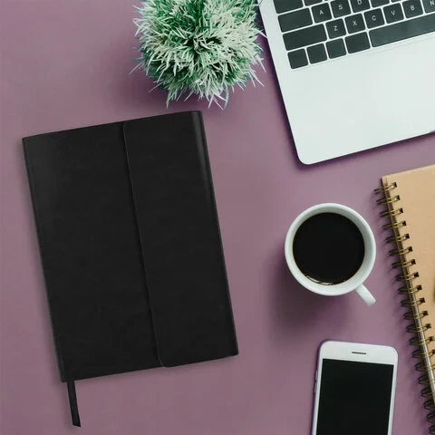Внутренний блок включает 160 листов белой бумаги плотностью 70 г/м2. Каждая страничка имеет перфорированный угол. Благодаря стандартному формату А5 ежедневник удобно использовать как в офисе, так и на выездных деловых встречах. Интегральная (мягкая) обложка, выполненная в классическом черном цвете и стилизованная под гладкую кожу, фиксируется магнитным клапаном, поэтому ежедневник не откроется в сумке или портфеле и страницы не помнутся. Подходит для горячего тиснения.