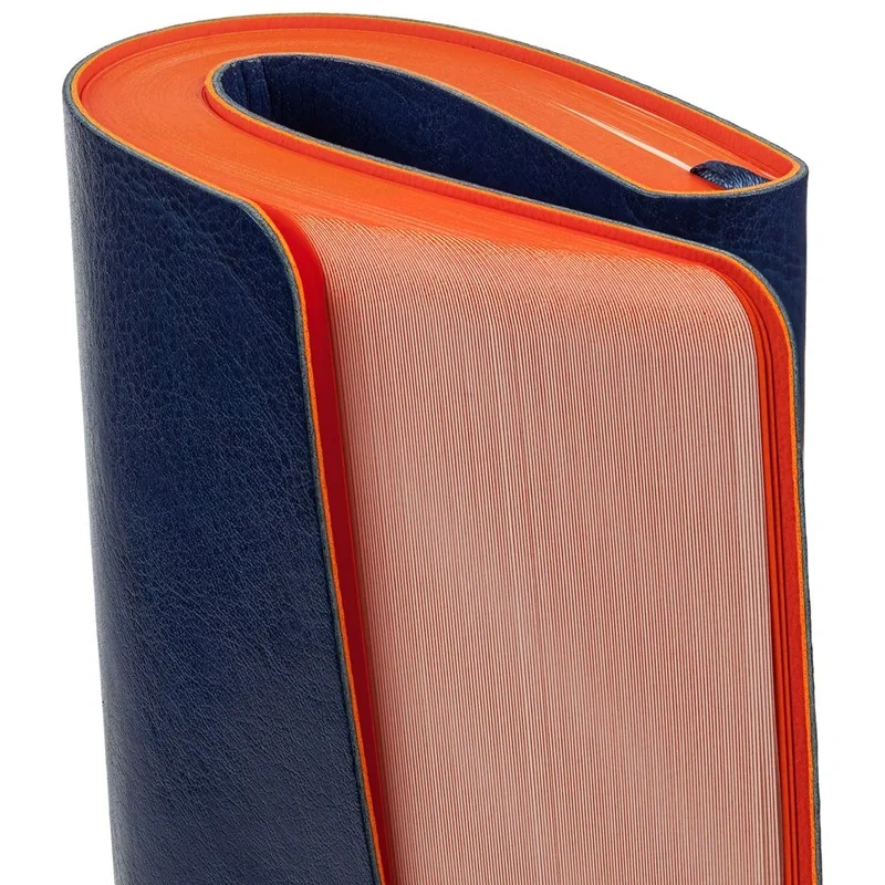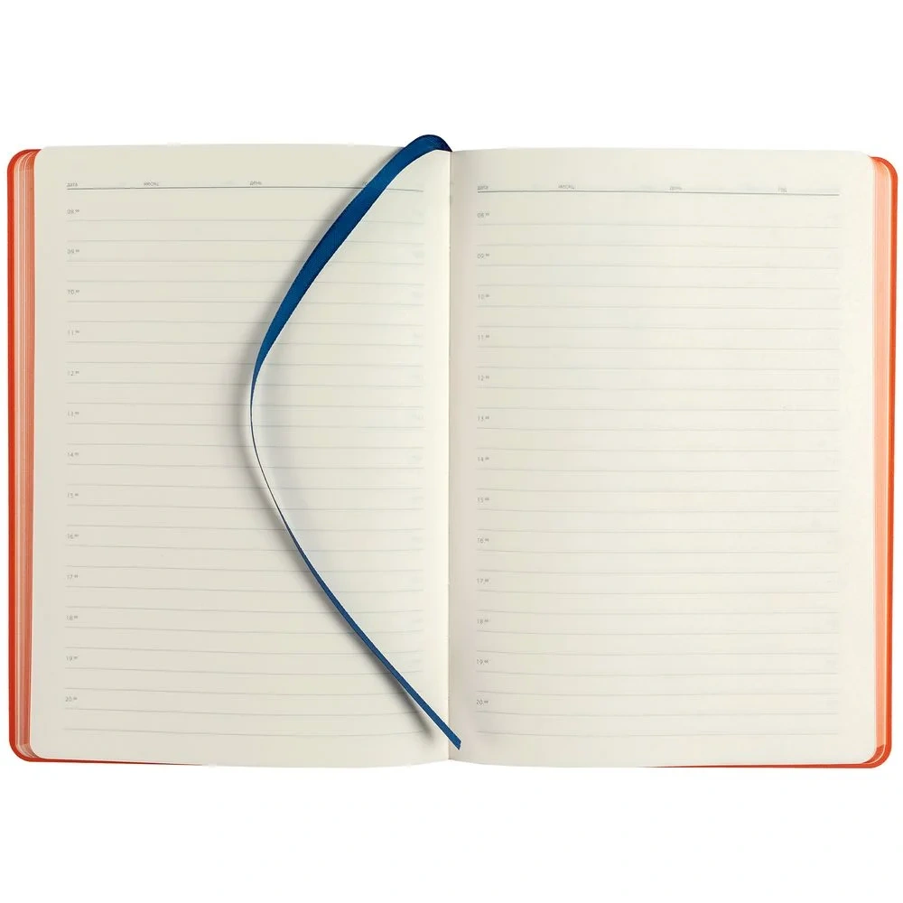 Ежедневник с гибкой обложкой, выполнен из материала Nebraska, синий НН и Latte, оранжевый OO, дополнен ляссе в цвет обложки.Блок 986:Кол-во страниц — 256;Бумага — тонированная, плотность 70 г/м;Тонированный обрез блока — оранжевый;Форзац и нахзац — оранжевые. Цвет: синий. Размер изделия: 15х21 см. Материал: искусственная кожа. Возможные виды нанесения: УФ-печать; Тиснение; Лазерная гравировка; Шелкография с трансфером; Шелкография (1 цвет);