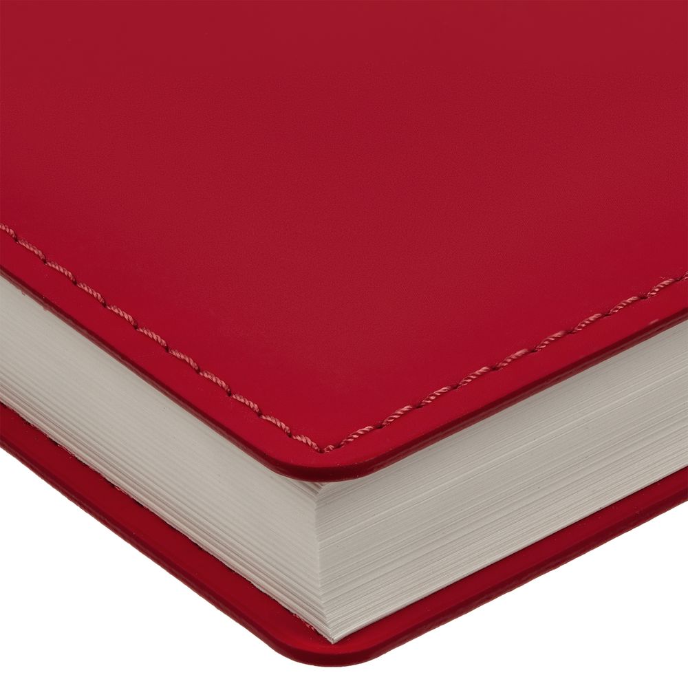 Ежедневник с гибкой обложкой, выполнен из материала Soft Touch Ultra, красный РР, дополнен петелькой для ручки из покровного материала, капталом и ляссе красного цвета. Блок с графикой 922 блока:Кол-во страниц — 336; Бумага — тонированная, плотность 70 г/м; Форзац и нахзац — тонированные. Цвет - красный. Размер: 15х21 см. Материал: покрытие софт-тач. Возможные виды нанесения: УФ-печать; Тиснение; Шелкография с трансфером; Шелкография (1 цвет)