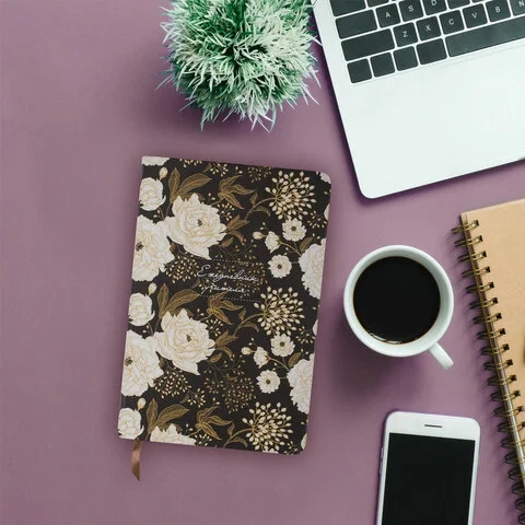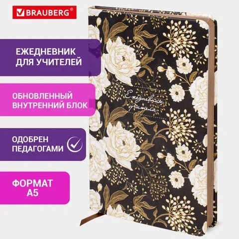 Ежедневник учителя специализированный А5 (215х145 мм) BRAUBERG, 144 л., кожзам, 'Цветы на черном', 1