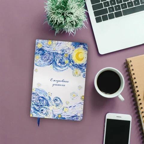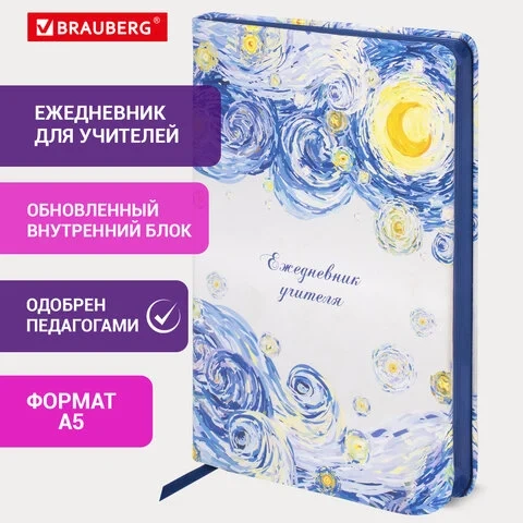 Ежедневник учителя специализированный А5 (215х145 мм) BRAUBERG, 144 л., кожзам, 'Звездная ночь', 112