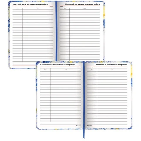 Обложка выполнена из твердого картона с покрытием из экокожи и книжным переплетом в сочетании с ярким рисунком, который создает красивый визуальный эффект. Внутренний блок содержит 144 листа офсетной бумаги плотностью 70 г/м2. Недатированный ежедневник учителя формата А5 (215х145 мм) станет прекрасным и полезным подарком для представителей этой профессии, а яркая обложка украсит рабочее место.