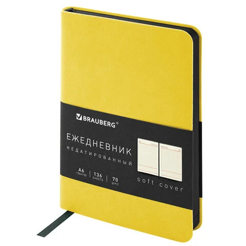 Ежедневник недатированный Brauberg Metropolis Mix желтый, А6, 136 листов, под кожу