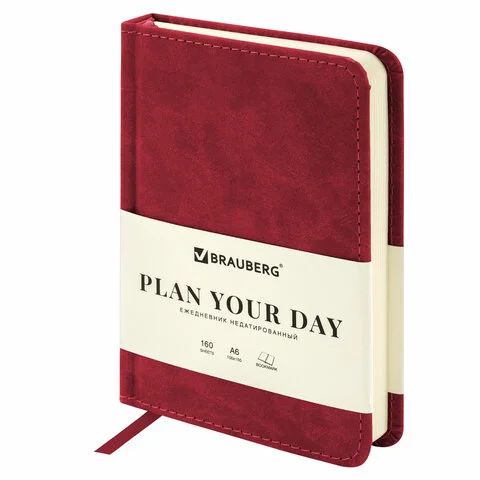 Ежедневник недатированный Brauberg Status красный, А6, 160 листов, под кожу