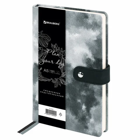 Ежедневник недатированный А5 138х213 мм BRAUBERG 'Nebula', под кожу, застежка, 160 л., черный, 11623