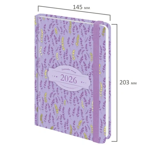 Ежедневник датированный 2026 с резинкой 145х203 мм, А5, BRAUBERG твердый, фольга, 'Лаванда', 117344