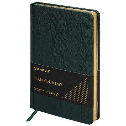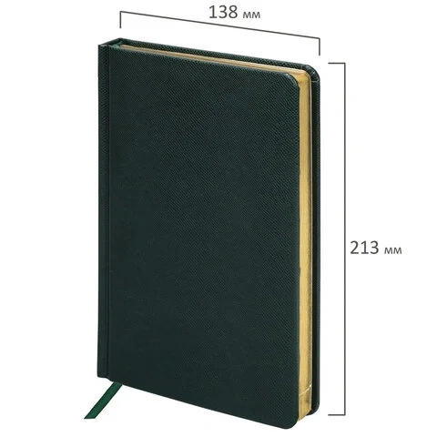 Ежедневник недатированный А5 (138х213 мм) BRAUBERG 'Imperial', 160 л., кожзам, зеленый, 111855