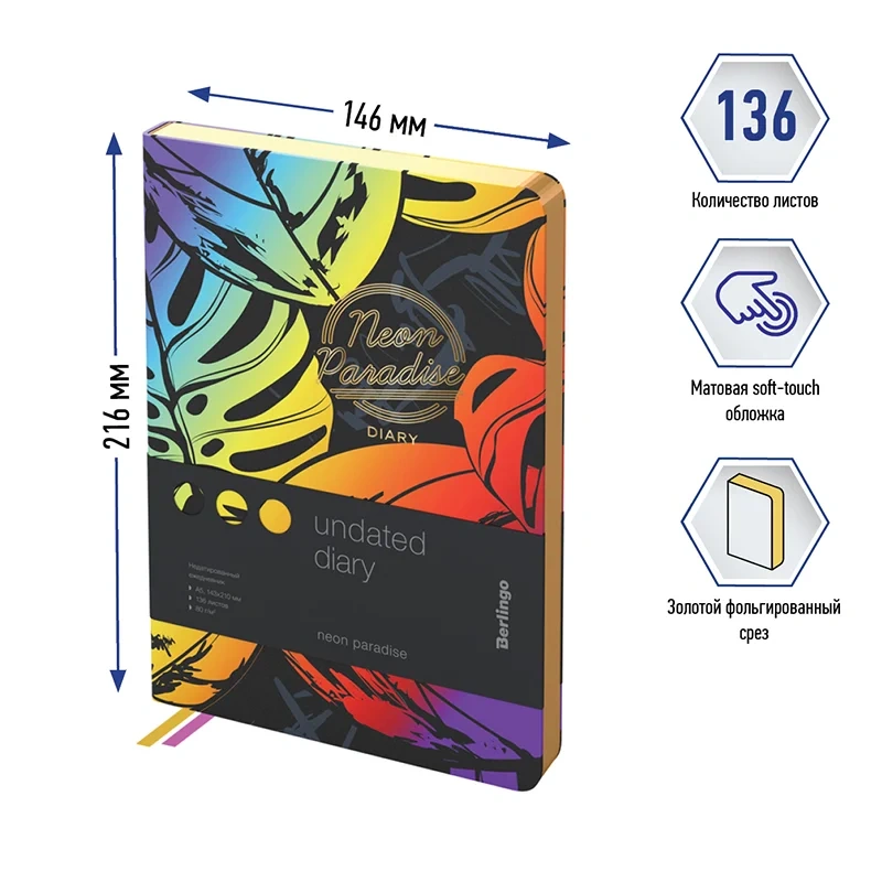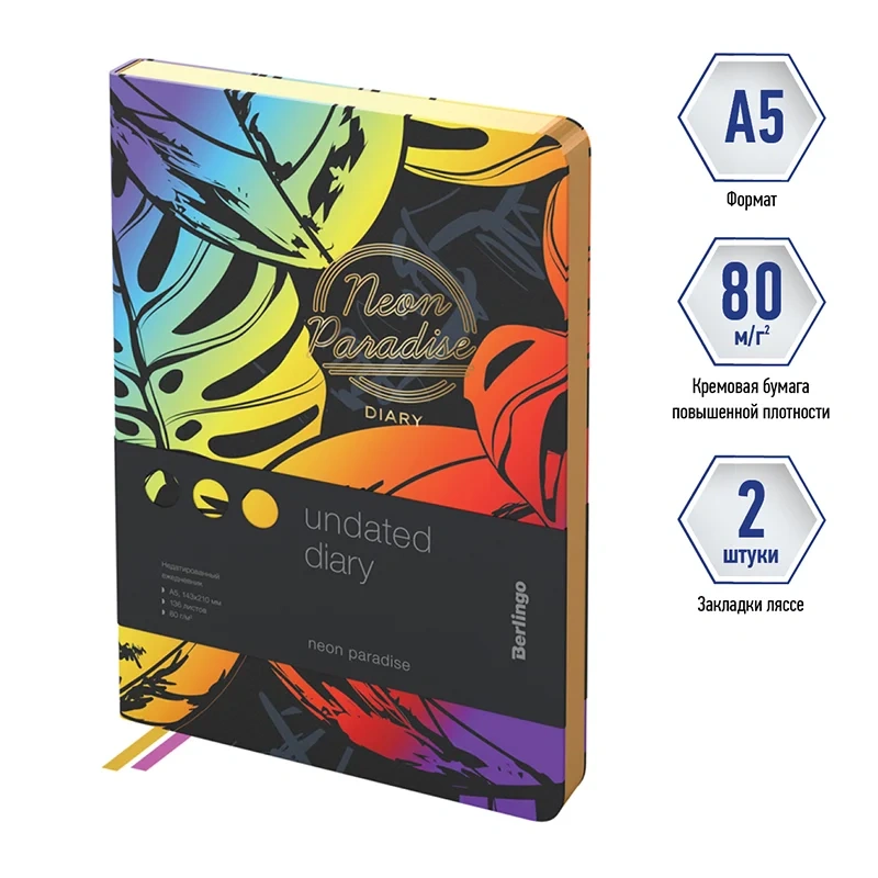Ежедневник недатированный Berlingo Neon Paradise А5, 136 листов, золотой срез