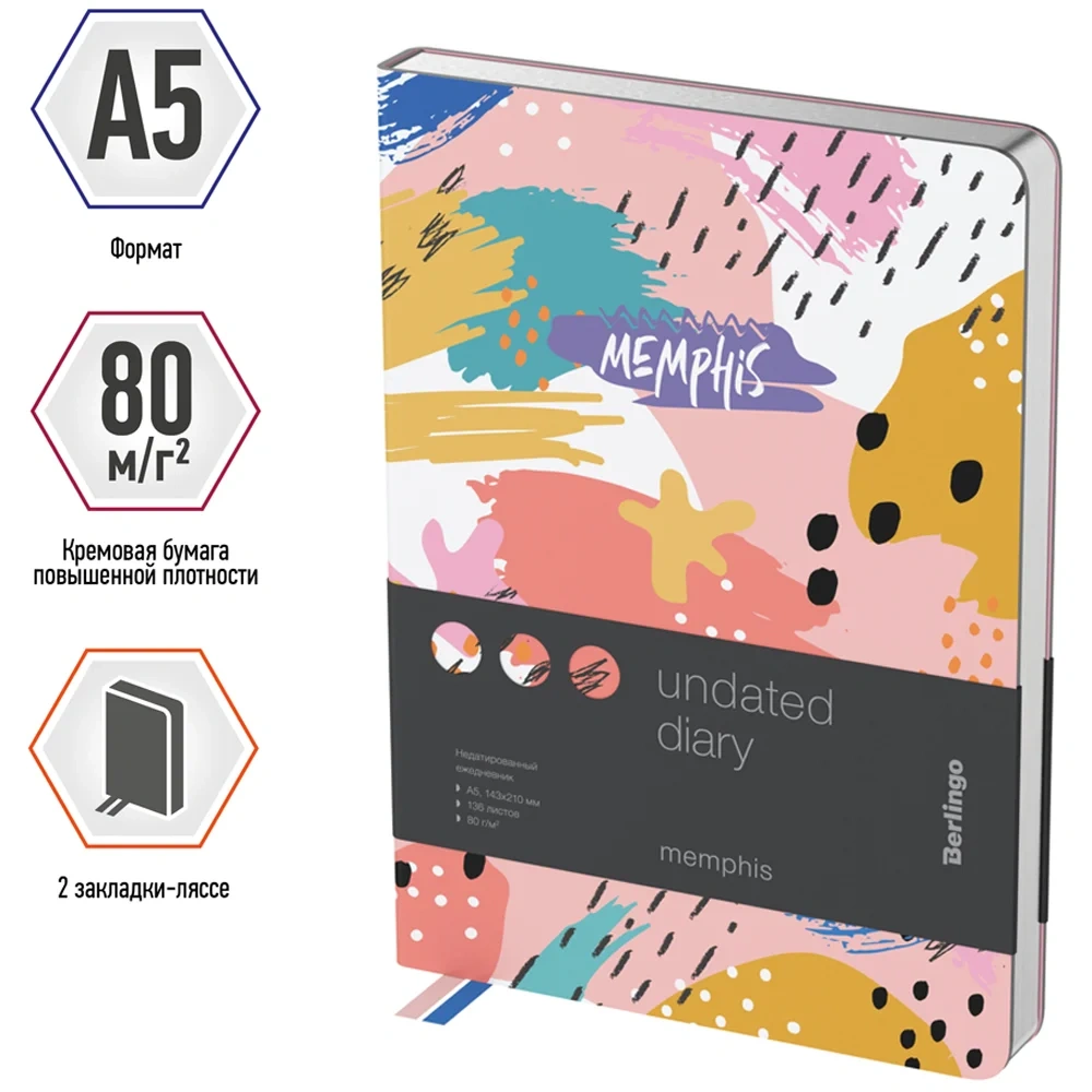 Ежедневник недатированный Berlingo Memphis А5, 136 листов, серебряный срез