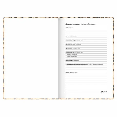 Ежедневник недатированный А5 145х215 мм, ламинированная обложка с фольгой, 160 л., STAFF, 'Леопард',