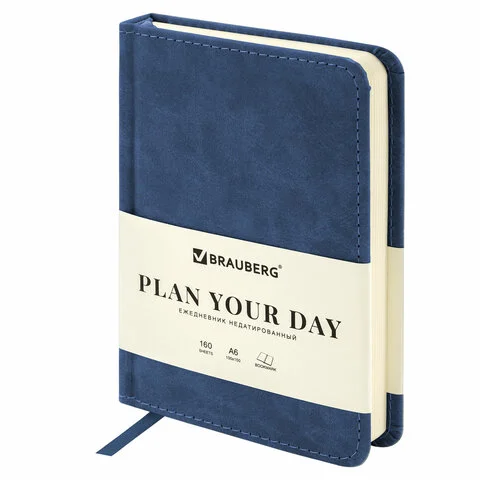 Ежедневник недатированный Brauberg Status синий, А6, 160 листов, под кожу