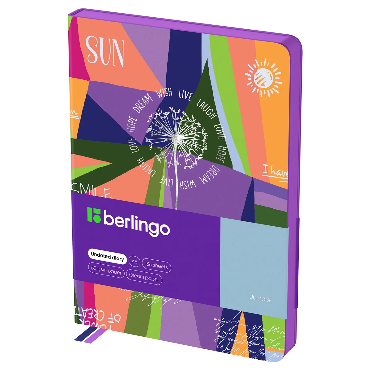 Ежедневник недатированный, А5, 136л., кожзам, Berlingo 'Jumble', сиреневый срез, с рисунком