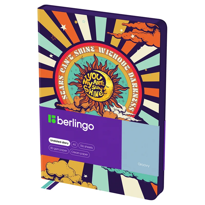 Ежедневник недатированный, А5, 136л., кожзам, Berlingo 'Groovy', фиолетовый срез, с рисунком