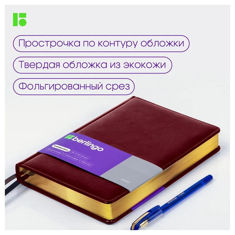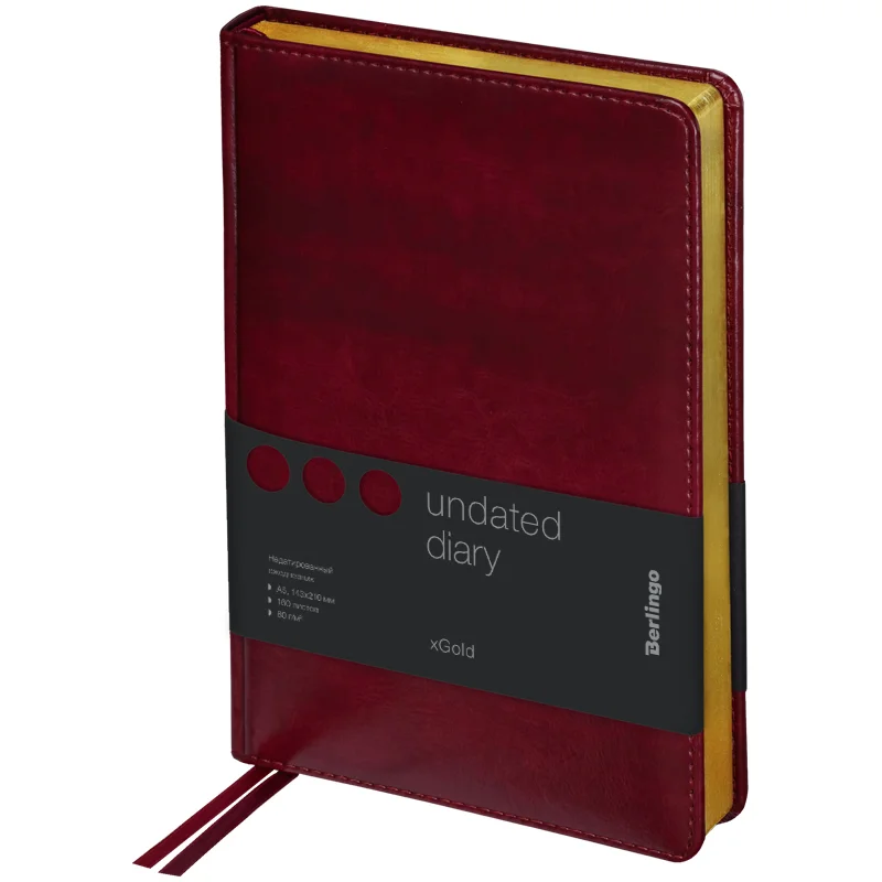 Ежедневник недатированный Berlingo xGold бордовый, А5, 160 листов, кожзам
