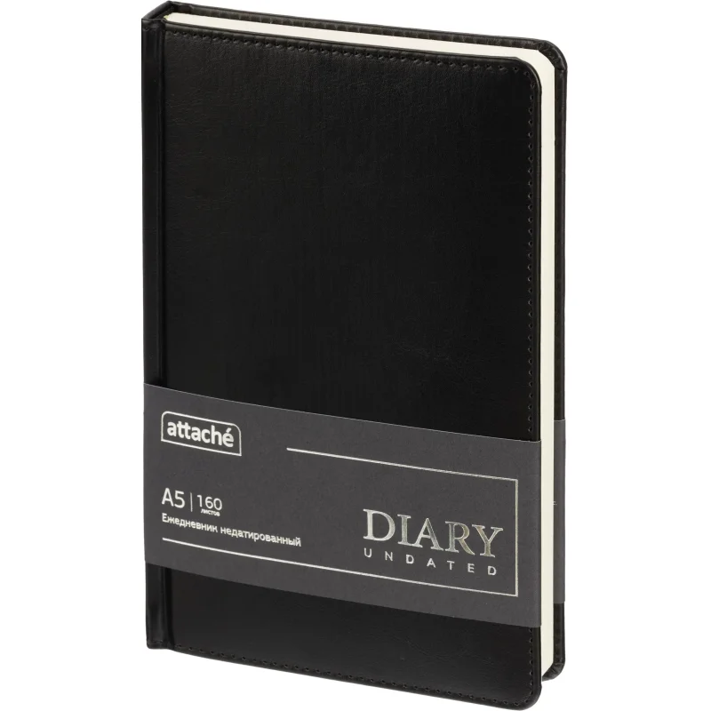 Ежедневник недатированный Attache А5, 160л, 138x213мм под кожу, черный