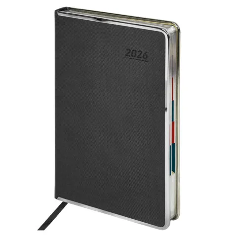 Ежедневник датированный 2026,Attache,сереб./резин./срез,А5,352стр,Рияд Ламе