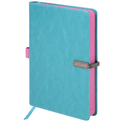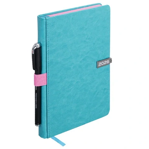 Ежедневник датированный 2026 А5 138x213 мм, BRAUBERG 'Inspiration', под кожу, цветной срез, бирюза,