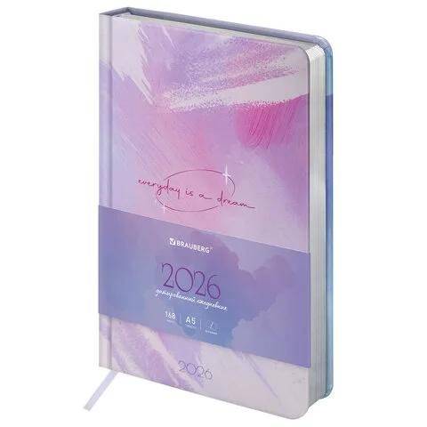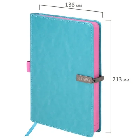 Ежедневник датированный 2026 А5 138x213 мм, BRAUBERG 'Vista', под кожу твердый, 'Pastel', 117458