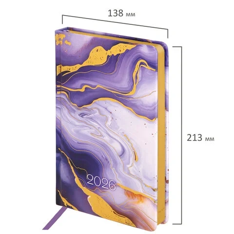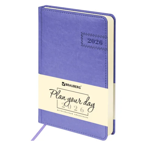Ежедневник датированный 2026 А5 138x213 мм, BRAUBERG 'Stylish', под кожу, гибкий, фиолетовый, 117100