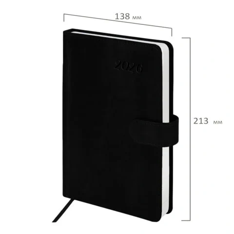 Ежедневник датированный 2026 А5 138x213 мм, BRAUBERG 'Legend', под кожу, застежка, черный, 117070