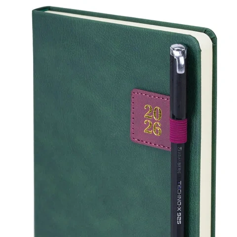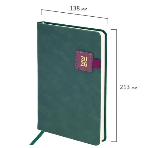 Ежедневник датированный 2026 А5 138х213 мм, BRAUBERG 'Accent', под кожу, держатель, зеленый/бордо, 1