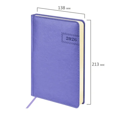 Ежедневник датированный 2026 А5 138x213 мм, BRAUBERG 'Imperial', под кожу, сиреневый, 117064