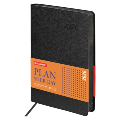 Ежедневник датированный 2026 А5 138x213 мм, BRAUBERG 'Stylish', под кожу, гибкий, черный, 117097