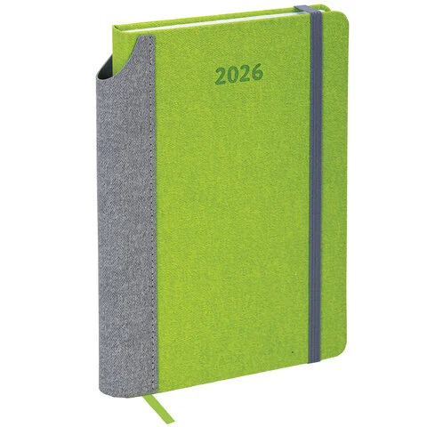 Ежедневник датированный 2026 А5 138x213 мм, BRAUBERG 'Mosaic', под кожу, карман для ручки, зеленый,