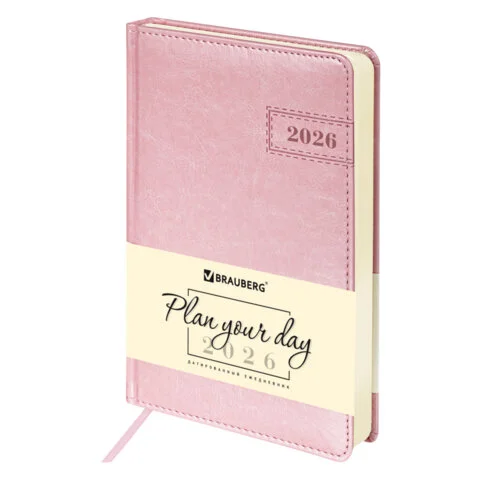 Ежедневник датированный 2026 А5 138x213 мм, BRAUBERG 'Vista', под кожу твердый, 'Tenderness', 117455