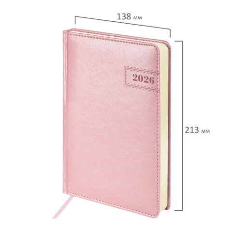 Ежедневник датированный 2026 А5 138x213 мм, BRAUBERG 'Imperial', под кожу, розовый, 117065