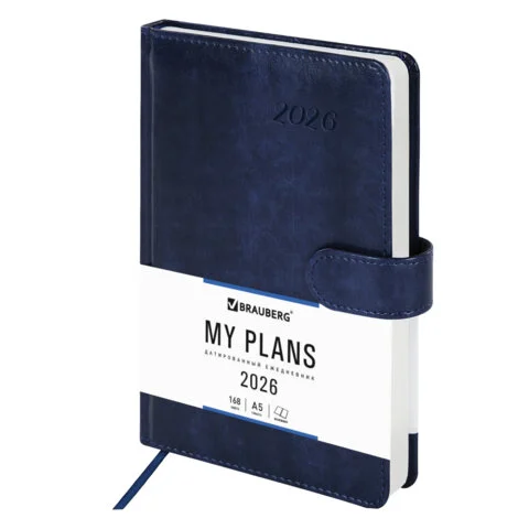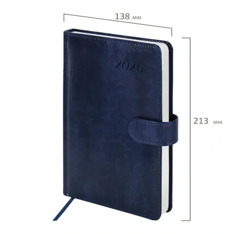 Ежедневник датированный 2026 А5 138x213 мм, BRAUBERG 'Legend', под кожу, застежка, синий, 117067