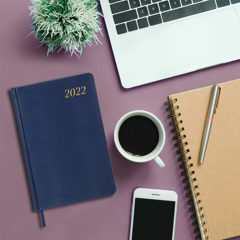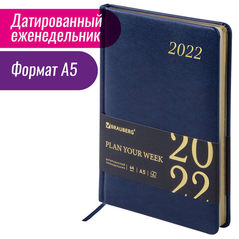 Еженедельник датированный 2022 А5 145х215 мм BRAUBERG 'Iguana', под кожу, синий, 112870