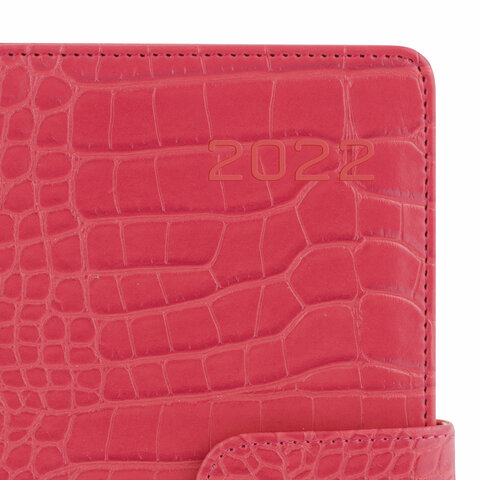 Внутренний блок включает 64 листа тонированной бумаги плотностью 70 г/м2. Благодаря стандартному формату А5 еженедельник удобно использовать как в офисе, так и на выездных деловых встречах. Твердая обложка, стилизованная под кожу крокодила фиксируется магнитной застежкой, поэтому еженедельник не откроется в сумке или портфеле и страницы не помнутся. Подходит для горячего тиснения. Дополнением является закладка-ляссе, с помощью которой при необходимости можно быстро открыть еженедельник на нужной странице. Помимо прочего, еженедельник снабжен обширным справочным материалом. Выполнен в ярком коралловом цвете.