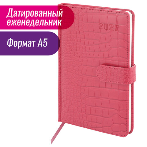 Еженедельник датированный 2022 А5 145х215 мм BRAUBERG 'Party', под кожу, розовый, 112874