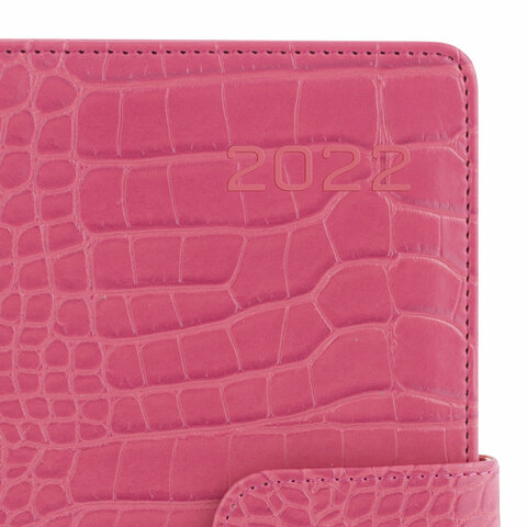 Внутренний блок включает 64 листа тонированной бумаги плотностью 70 г/м2. Благодаря стандартному формату А5 еженедельник удобно использовать как в офисе, так и на выездных деловых встречах. Твердая обложка, стилизованная под кожу крокодила фиксируется магнитной застежкой, поэтому еженедельник не откроется в сумке или портфеле и страницы не помнутся. Подходит для горячего тиснения. Дополнением является закладка-ляссе, с помощью которой при необходимости можно быстро открыть еженедельник на нужной странице. Помимо прочего, еженедельник снабжен обширным справочным материалом. Выполнен в ярком розовом цвете.