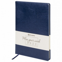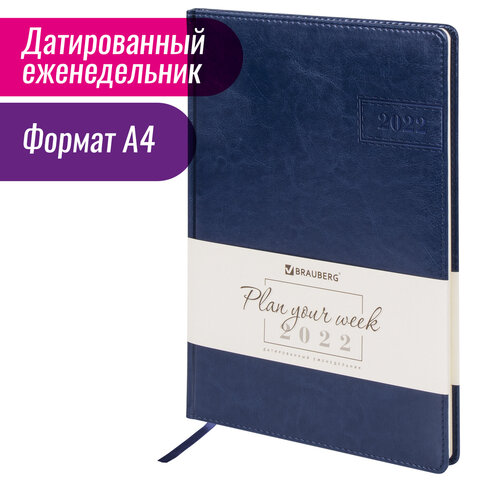 Еженедельник датированный 2022 БОЛЬШОЙ ФОРМАТ 210х297 мм А4, BRAUBERG 'Imperial', под кожу, синий, 1