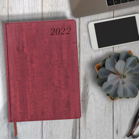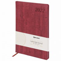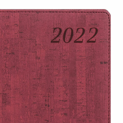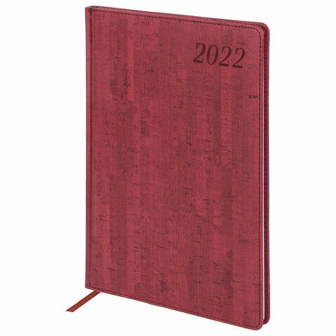 Еженедельник датированный 2022 БОЛЬШОЙ ФОРМАТ 210х297 мм А4, BRAUBERG 'Wood', под кожу, бордовый, 11