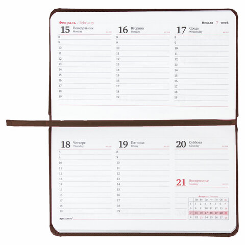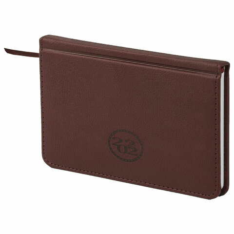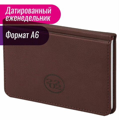 Еженедельник датированный 2022 МАЛЫЙ ФОРМАТ 95х155 мм А6, BRAUBERG 'Favorite', под кожу, коричневый,