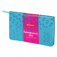 Еженедельник датированный 2022 МАЛЫЙ ФОРМАТ 95х155 мм А6, BRAUBERG 'Glance', под кожу, бирюзовый, 11