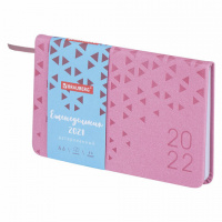 Еженедельник датированный 2022 МАЛЫЙ ФОРМАТ 95х155 мм А6, BRAUBERG 'Glance', под кожу, розовый, 1128