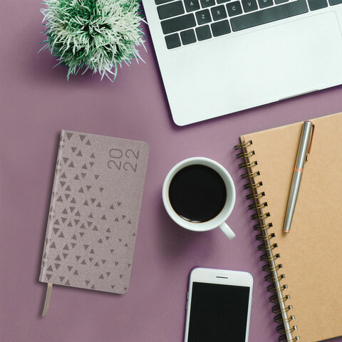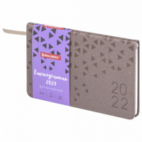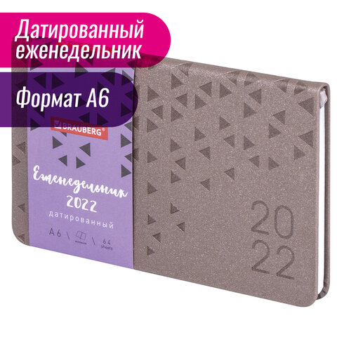 Еженедельник датированный 2022 МАЛЫЙ ФОРМАТ 95х155 мм А6, BRAUBERG 'Glance', под кожу, серый, 112899