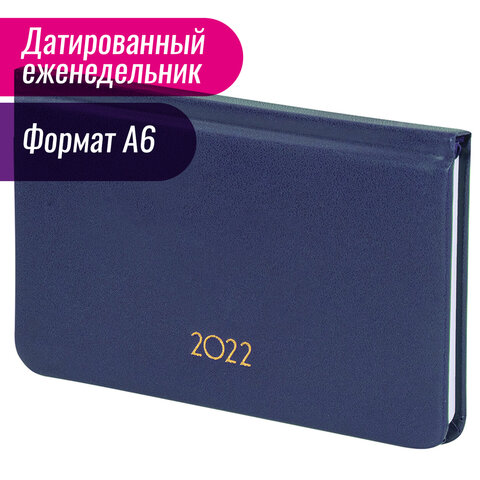 Еженедельник датированный 2022 МАЛЫЙ ФОРМАТ 95х155 мм А6, BRAUBERG 'Select', балакрон, синий, 112893